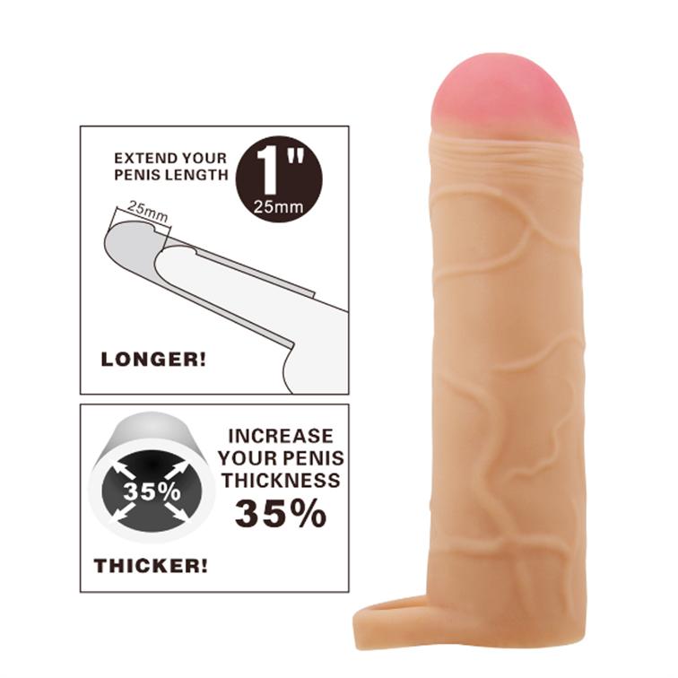 – Una funda para el pene muy recomendable que le da a su pene una textura extra para un aspecto natural